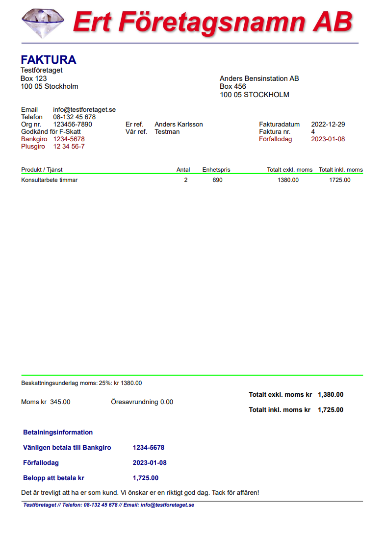 Hej igen! Tack för snabbt svar. Vill gärna veta om vi kan betala för support per gång om vi behöver hjälp? Men jag tvivlar på det, det har ju fungerat felfritt sen vi fick det. Rekommenderade även programmet till min bror, B. Transport, förra året och han är lika nöjd som vi, ett otroligt lättlärt och enkelt att använda. MVH